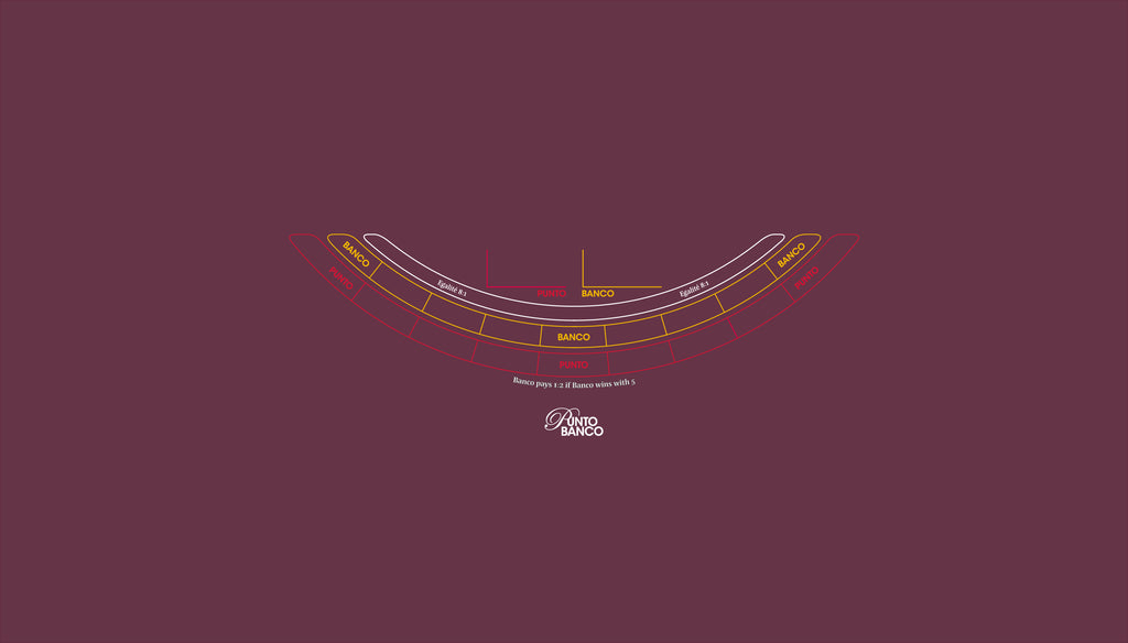Layout voor een Punto Banco 9 speler tafel in diverse kleuren.